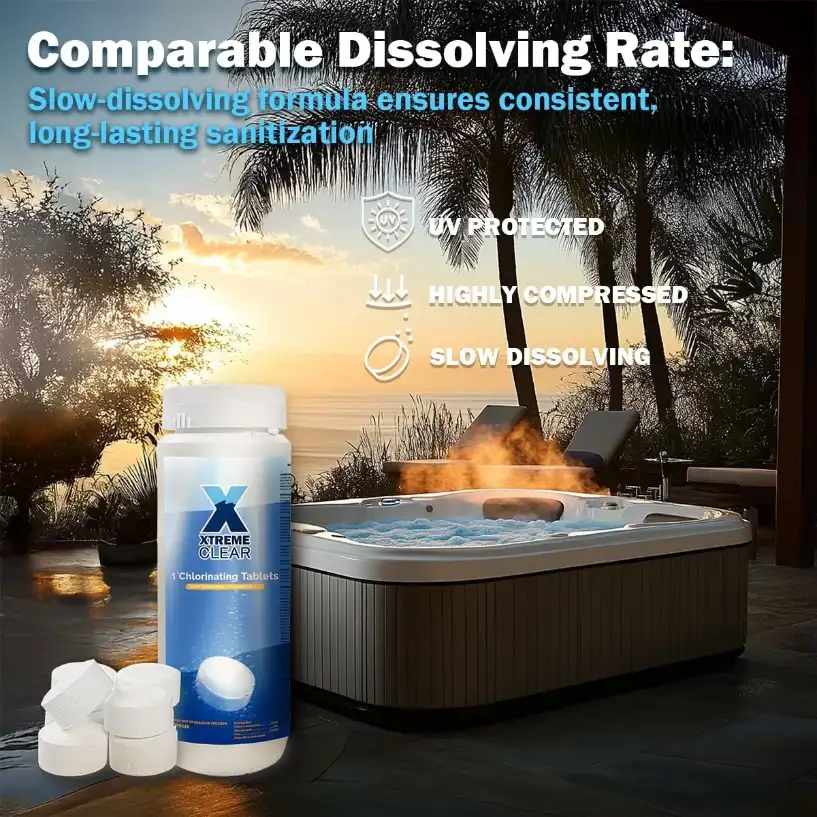 The new slow-release feature gives as much as one week of continuous sanitization per tablet used. This extended-release system maintains steady chlorine levels, with no highs and lows that come with fast-dissolving alternatives. Properly sanitized water stays between maintenance sessions.1 tablet treats about 5,000 gallons of water, making them very affordable. The controlled dissolution rate prevents wasting chlorine but ensures adequate sanitization over the entire treatment period.