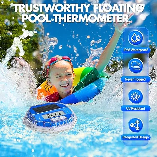 The well-considered design puts usability first without sacrificing functionality. While the tilted screen angle maximizes visibility from poolside positions, the large display guarantees that temperature readings are visible from a considerable distance.With its professional-grade temperature monitoring and captivating light show, this top floating pool thermometer is the ideal combination of entertainment and functionality. This cutting-edge gadget guarantees that your water temperature is always precisely controlled while enhancing the aesthetic appeal of your aquatic environment, whether you’re tracking pool conditions or spa temperatures.