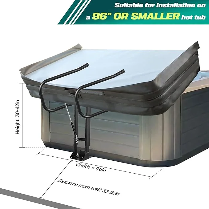 This hot tub cover lifter needs the bottom part of your spa and 32-52 inches of space behind the hot tub to work best. This high-quality system is made for above-ground setups and is not right for sunken or buried spas. The exact design makes sure it works well while keeping the pretty look of your outdoor area. The smooth shape goes great with any spa setting without taking over the way it looks.