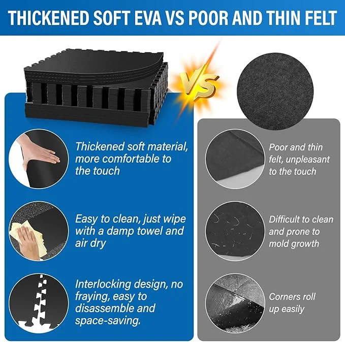 The use of puzzle-piece design allows custom sizing for different applications. Smaller sections may be created for specific uses or several sets combined for larger coverage areas. It’s one purchase for multiple household needs and, hence, much better in terms of value as compared to single-purpose alternatives.
