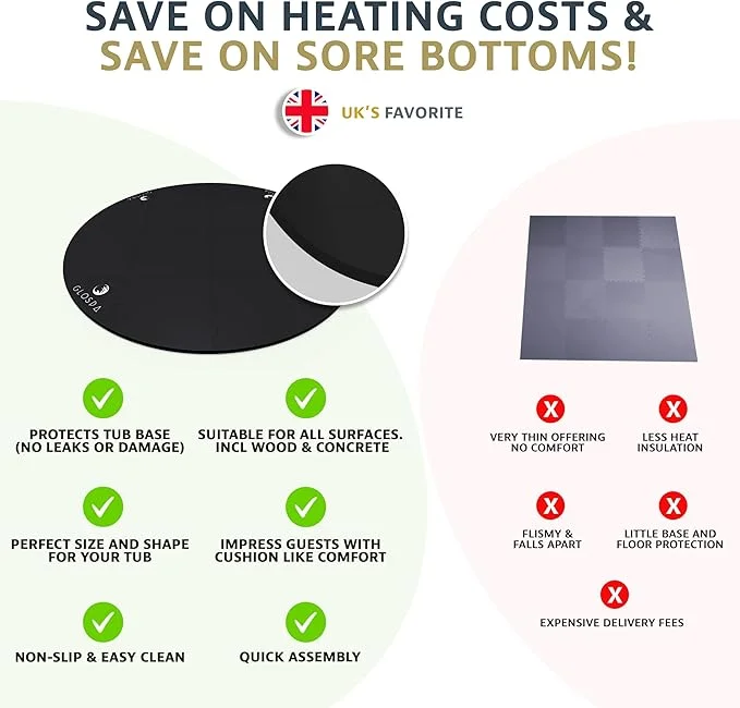 Improve your hot tub feel with our best circle hot tub floor mat that gives great comfort, safety, and energy savings. This new blow-up hot tub base pad changes your spa setup into a high-quality install while giving big money savings through better insulation.
