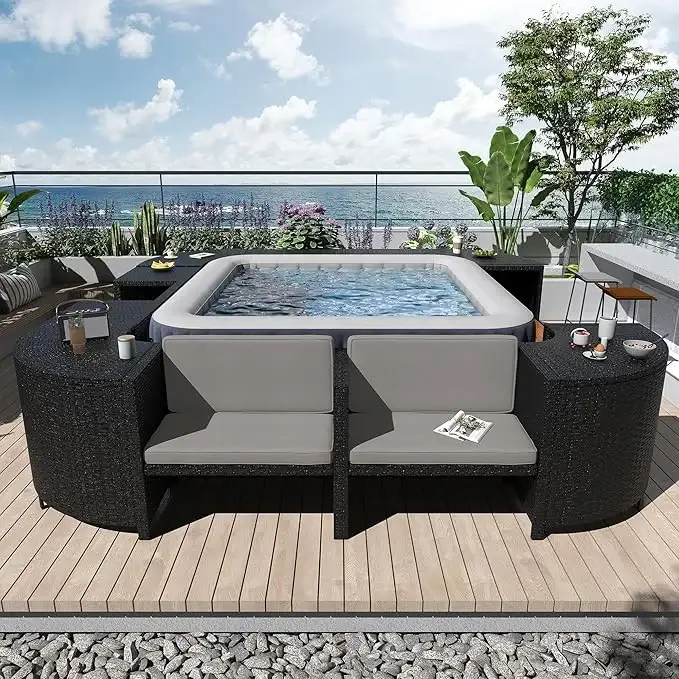Enhance your yard comfort with this stylish four-sided hot tub frame that combines function with form. Made specifically for 74-inch mobile hot tubs, this complete seat upgrade transforms ordinary tub times into luxurious outdoor getaways. The new square design optimizes your spa space while maintaining a stylish appearance. Unlike simple blow-up hot tub rings, this better option offers genuine furniture-level build quality that withstands everyday use and harsh weather.