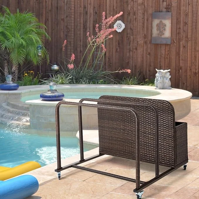 Poolside Float Storage Organizer, Outdoor Wicker Rattan Pool Float Holder