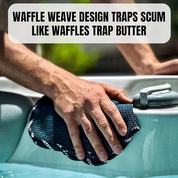 The unique microfiber blend of these spa shell cleaner towels is enhanced with unique waffle grooves that effectively capture impurities. These towels lock away scum, dirt, and grime for complete removal, much like waffles naturally retain syrup and butter in their grooves.In addition to creating maximum surface contact, the special groove pattern offers superior cleaning action over conventional flat towels and does away with the need for harsh scrubbing motions.