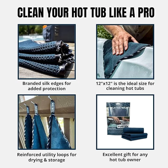 With these professional-grade cleaning towels, you can transform your hot tub maintenance routine and achieve spa-quality results in your home. Regular cleaning is more effective and efficient when premium materials, creative design, and useful functionality are combined.These microfiber hot tub surface cleaner towels are the best option for discriminating hot tub owners who want the best surface care and protection, guaranteeing that your spa investment will continue to look great and work well for many years to come.