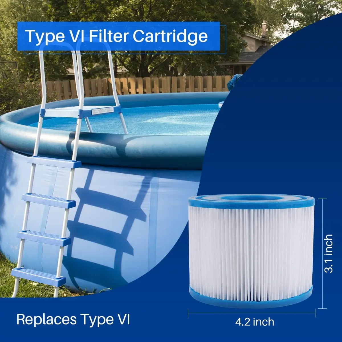 Keep your water crystal clear with the POOLPURE Type VI Replacement Cartridge. This filter cartridge sifts out the debris and dirt in your above ground swimming pool so the pump can refill it with clean pool water. When they get dirty, rinse them with the garden hose and they’re good to go. It’s recommended you replace your filter cartridge every 2 weeks to ensure your pool obtains the highest standard of cleanliness and hygiene. The water in your pool stays attractive and fresh all summer long, which makes it all the more enjoyable for your family and friends.