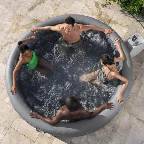 Important Electrical Safety Information Use of an extension cord or multi-plug adaptor is strictly prohibited due to overheating, which can lead to hot tub and surrounding property damage. The 12 ft. hot tub cord must be plugged directly into a grounded (corresponding voltage 110-120 V AC, 60Hz Single Phase 12A) receptable that is resistant to humidity and capable of high-power loading. If you’re unsure about the electrical supply quality, consult a qualified electrician before use. Regularly inspect the plug and socket for signs of damage. If signs of damage exist, do NOT plug back into the socket. Installation Location Inflatable hot tubs should be set up outdoors on level ground that’s able to support the weight of the hot tub, water and users, has adequate drainage to avoid property damage, and is within 12 ft. of a grounded receptable (3-prong outlet). Special Indoor Installation Requirements If you do set up your inflatable hot tub indoors, please note that humidity is a natural side effect of hot tub use and could cause damage to property.